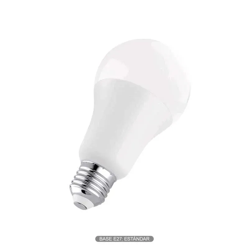 Pack de focos LED blancos tipo bombillo con base E27. CARACTERÍSTICAS: Consumo: 9W, Luz: amarilla (cálida), Intensidad de luz: 800 lúmens, vida útil: 15.000 horas. Pack x 4 unidades. Medidas del empaque: 6 x 11 x 24.5 cm. Peso: 0.11 kg. ECO LED